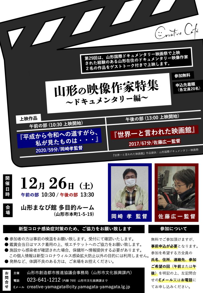 第29回 Creative Café|山形の映像作家特集〜ドキュメンタリー編〜(12月26日)