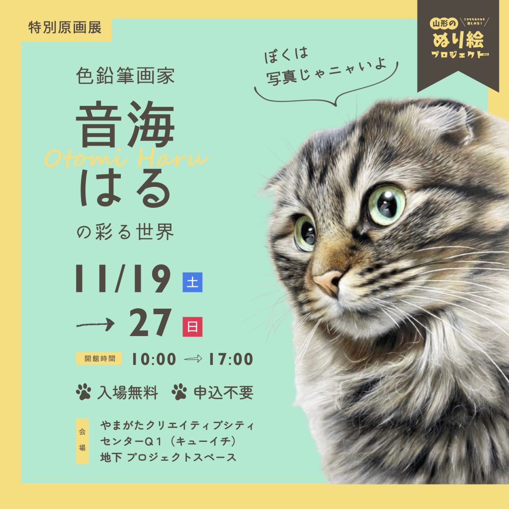 今回は、全国的にも人気急上昇中の山形市在住の色鉛筆画家・音海はる氏の特別原画展を、今年9月にオープンした「やまがたクリエイティブシティセンターQ1(キューイチ)」で開催します。
