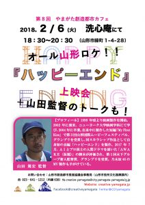 The 8th CREATIVE CAFE “A Screening of ALL YAMAGATA movie “HAPPY ENDING” and talk session inviting the director, Mr. YAMADA Atsuhiro” will be held on Tuesday, 6 Feb.