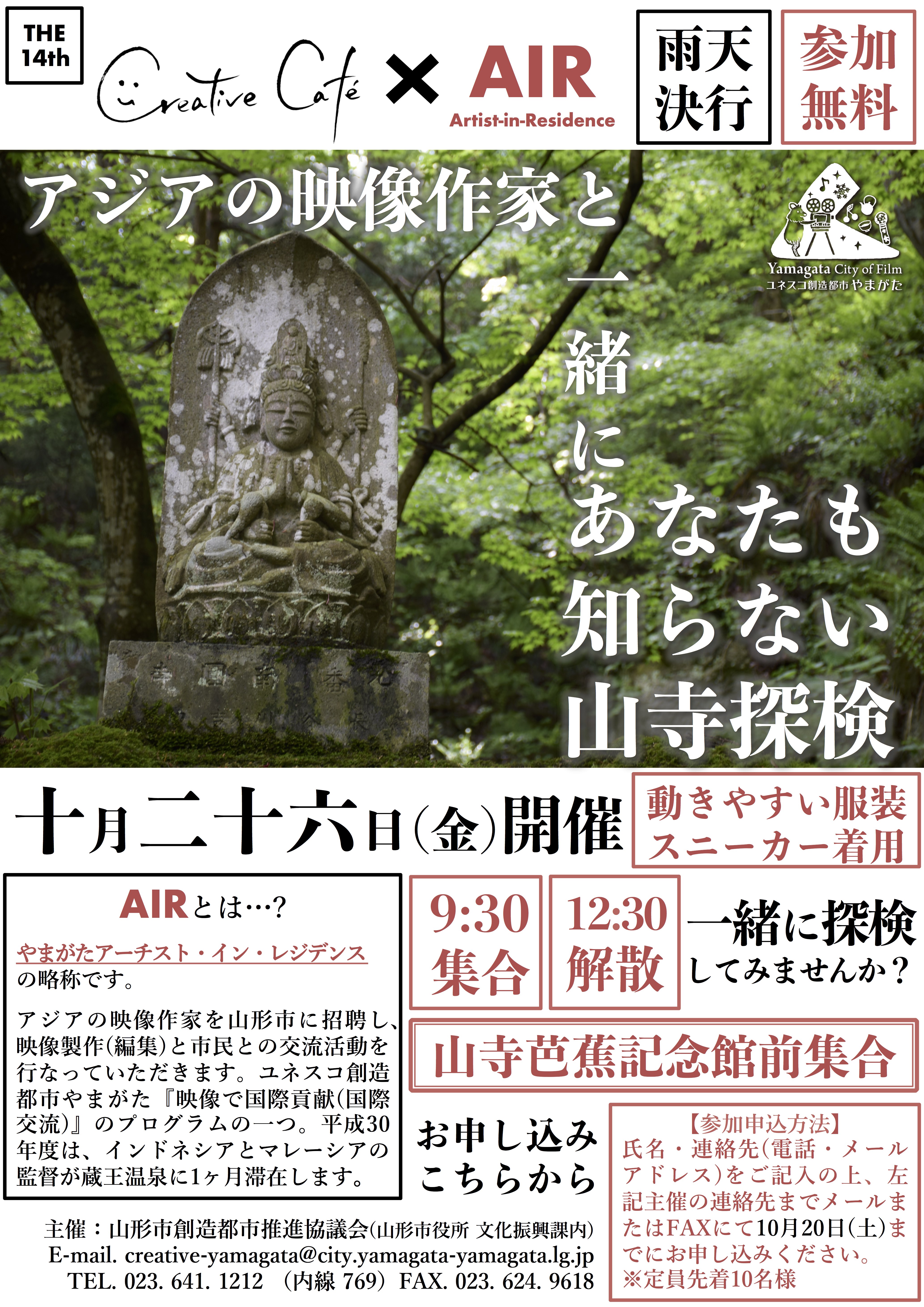 The 14th Creative Café “Discovering Yamadera with AIR directors” will be held on Friday, 26 Oct.