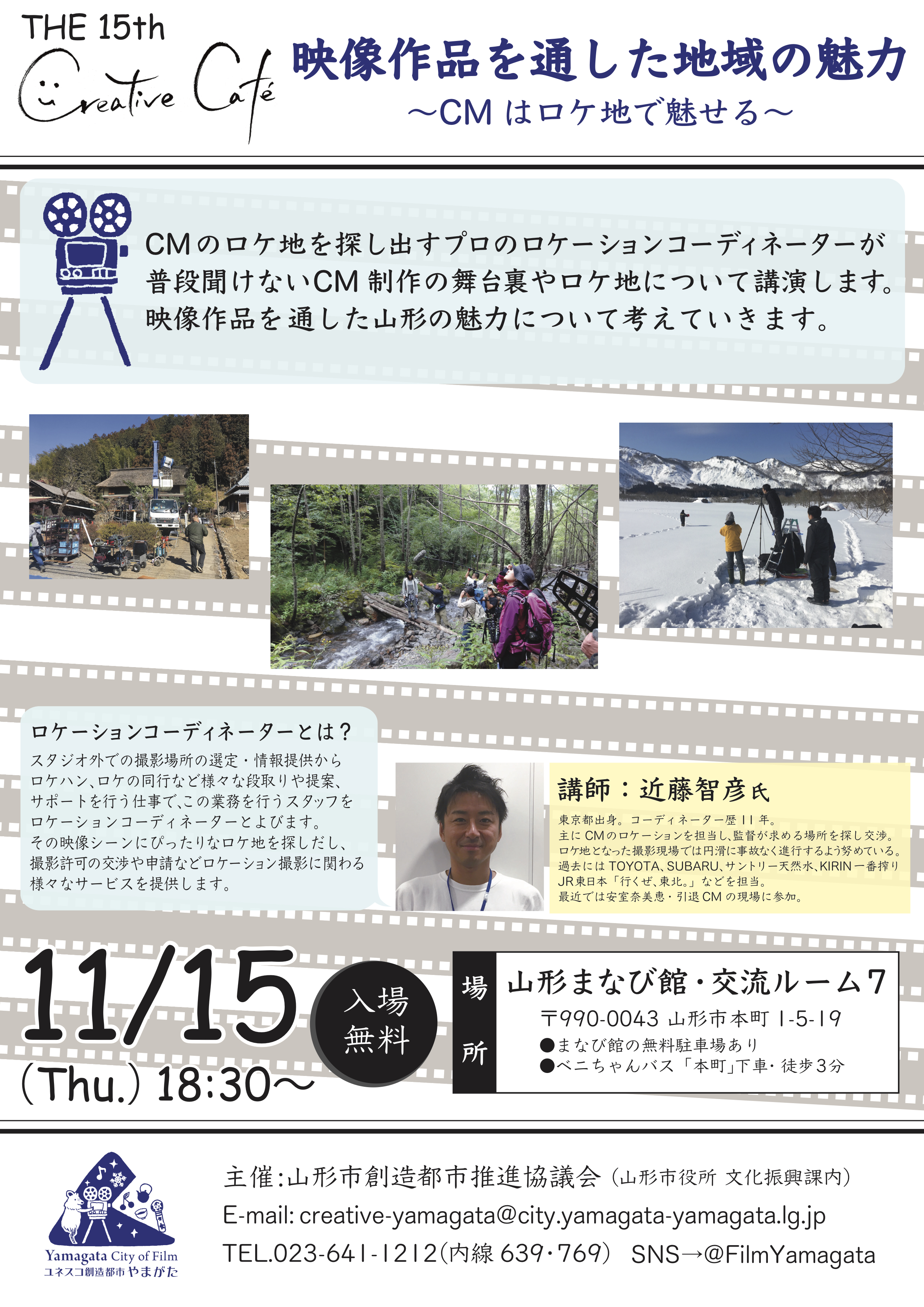 The 15th Creative Café “Local attractions through TV commercials” will be held on Thursday, 15 Nov.